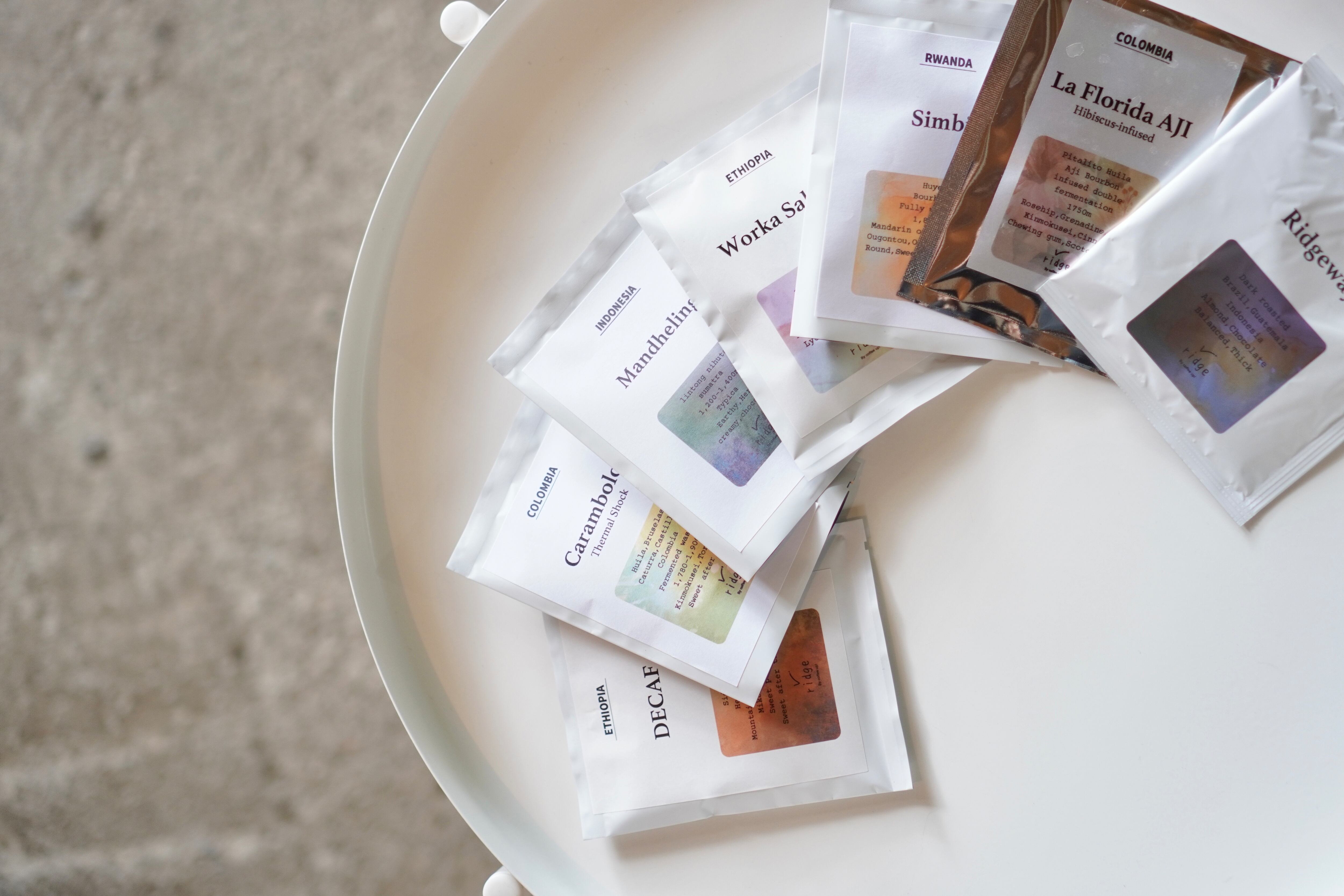 風味の違いでも楽しんでいただきたいと、今回限定で7種のドリップバックを2個ずつ計14個をご用意。